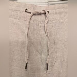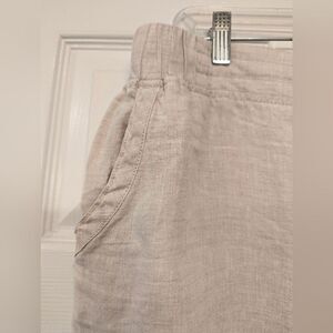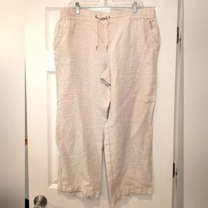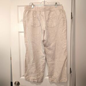 LL Bean linen pants, plus size linen trousers, women’s size 16 drawstring pants, cropped linen capris, beach vacation pants, summer resort wear, casual wide leg pants, neutral beige pants, breathable linen bottoms, relaxed fit crop pants