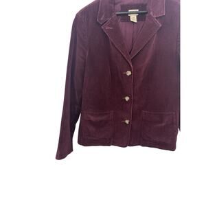 LLBean Women's Burgundy Corduroy Pocket Notch Collar Blazer Jacket