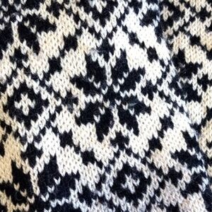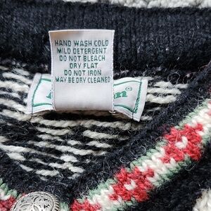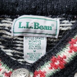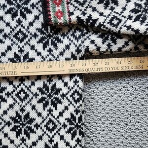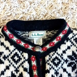 LLBean Women's Black and White Scandinavean Button Front Cardigan Sweater Size M