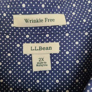 L.L.Bean Women’s Blue Polka Dot Collared Wrinkle Free Button Down Shirt 2X.