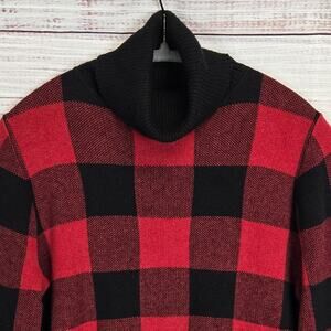 L.L.Bean Women's Buffalo Plaid Turtleneck Sweater S Red Black Cotton Cashmere