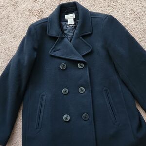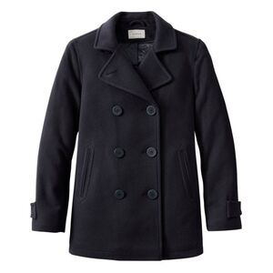 L.L.Bean Women's Classic Lambswool Pea Coat, Navy, Size 14 Petite