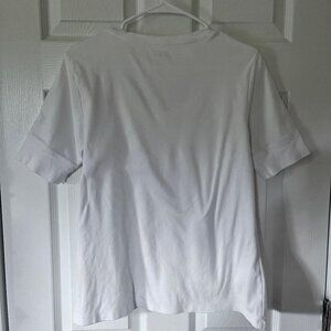 L.L.Bean, Women's, Double L Rib-Knit Tee Vneck Elbow Sleeve, White, Large
