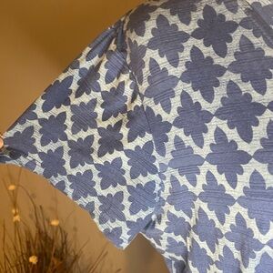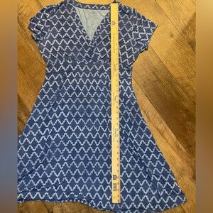 LLBean Women’s Dress LG Petite Blue Geometric Short Sleeve Midi Rayon Spandex