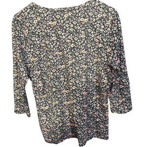 L.L.Bean Womens Floral 3/4 Sleeve Shirt L-Regular 100% Supima Cotton Made In Per