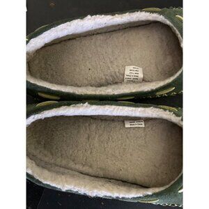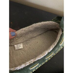 L.L.Bean Womens Green Suede Moccasin Slippers Size 8 Medium With Fleece Lining &