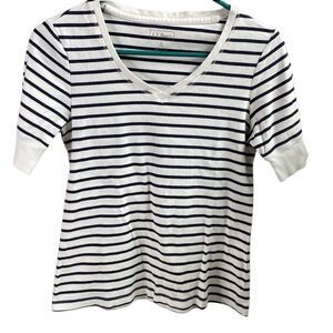 L.L. Bean Womens Pullover Striped VNeck Top Size Small Nautical Blue and White