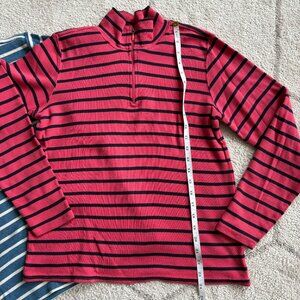 L.L.Bean Women’s Striped Mock Neck Cotton Sweaters Blue & Pink Nautical Pullover