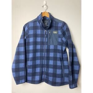 L.L.Bean Women's Sweater Fleece Jacket Full Zip Gingham Blue Size MED Granola