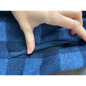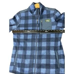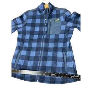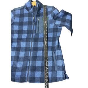 Details/Style Profile: Great two tone blue plaid LL Bean womens Full zip jacket with fleece lining, zippered pockets, Made in Jordan