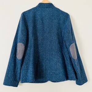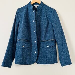L.L.Bean Women's Tweed Blazer Jacket Wool Medium Blue Lined Elbow Patches