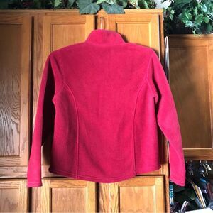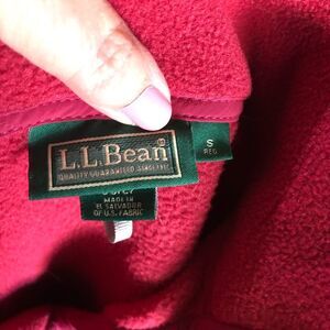 LL Bean Women’s Vintage 1/4 Snap Fleece Pullover Sweater Pockets Pop of Red - S