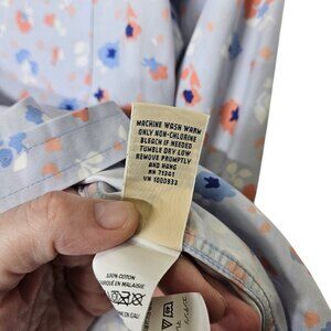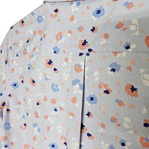 L.L.Bean Womens Wrinkle-Free Floral Button-Down Shirt XXS Light Blue 100% Cotton