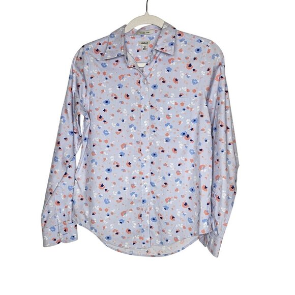 L.L.Bean Womens Wrinkle-Free Floral Button-Down Shirt XXS Light Blue 100% Cotton