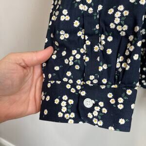 L.L. Bean wrinkle-free oxford shirt in navy with an allover white floral print. Long sleeves, crisp structure, and easy-care cotton — perfect for work or casual wear.