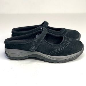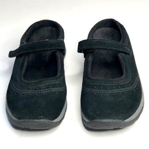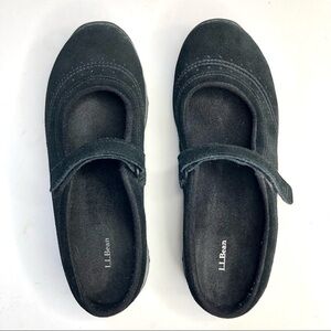 L.L.Bean suede Mary Jane mule slip on shoes hook and loop adjustable strap black