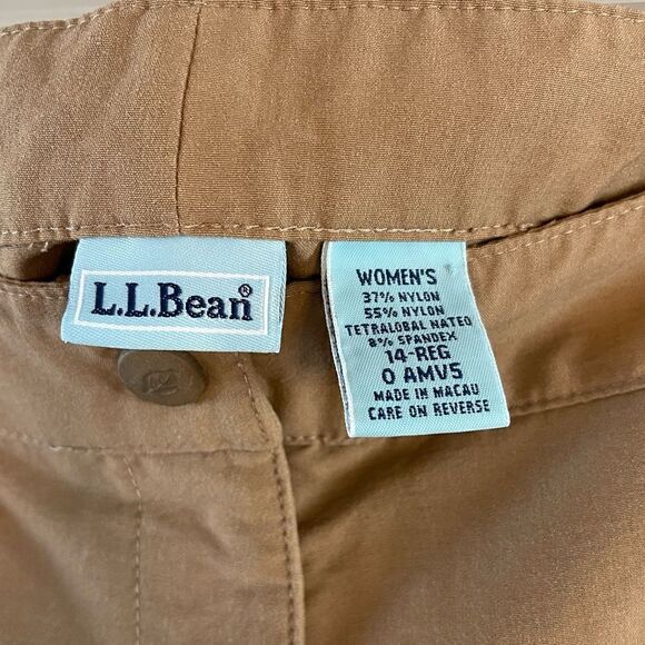 Beautiful pair of nylon tan pants from L.L. Bean, in a size 14. Similar to the comfort trail bottoms but these only have 2 side zipper pockets.