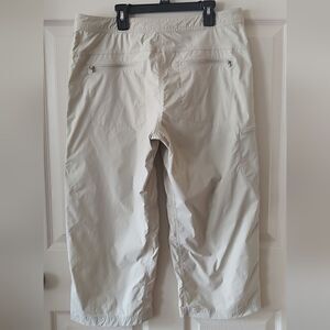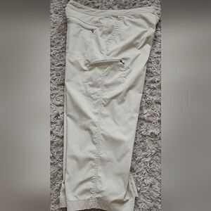 two pockets on the sides, two zipped pockets on the back, one zipped pocket on the side. color beige