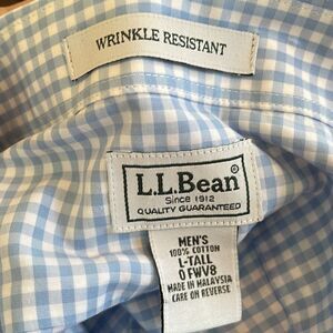L.L.Bean light blue & white check cotton short sleeve shirt