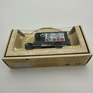 The LLEDO DAYS GONE 1934 OXO DENNIS PARCEL VAN in black diecast is a vintage toy vehicle from the United Kingdom. This collectible truck features advertising specimen packaging and is part of the Lledo brand's DAYS GONE series. The vehicle is made of plastic and diecast materials, and it comes in a boxed packaging, making it a great addition to any diecast and toy vehicles collection.