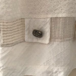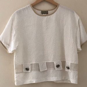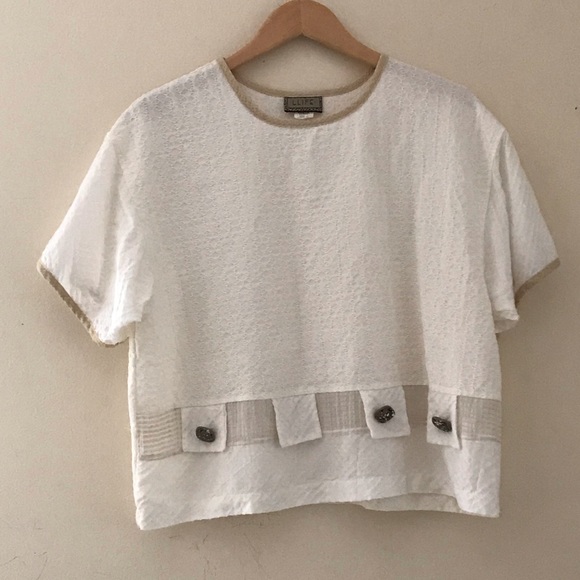 Vintage LLIFE semi- sheer top with signature multi fabric patchwork and button design. Pre- owned, clean and ready to wear. Approximate measurements coming soon.