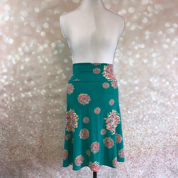 Comfy skirt! Teal with pink and yellow flower details. Great with a tank and flip flops or dress it up with a blouse and flats/pumps.