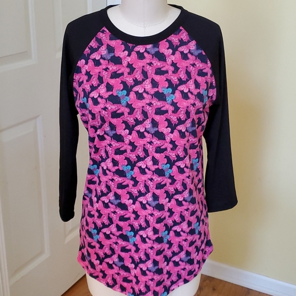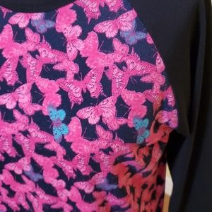 Like new, pink and blue butterflies with solid black sleeves