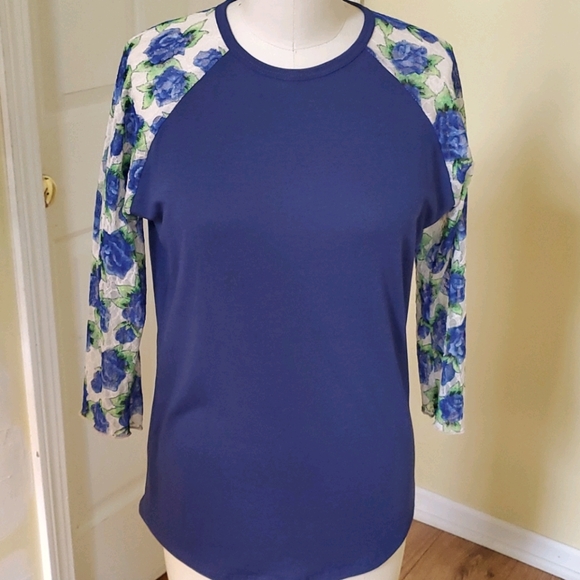 Dark blue with lace sleeves (cream with blue flowers)