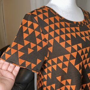 LLR S Carly Black Orange Triangular Print Crewneck Short Sleeve Hi Low Dress