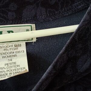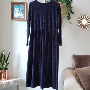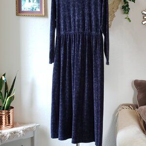 LL BEAN Vintage blue leaf motif velour style babydoll prairie maxi dress 14P
