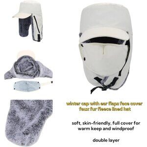Warm and comfortable cold weather hat: double-layer, winter cap with ear flaps face cover faux fur fleece lined hat; soft, skin-friendly, full cover for warm keep and windproof