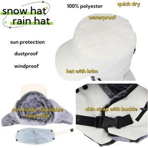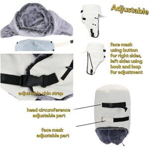 Other features: 100% polyester material trapper trooper hat, outer waterproof quick dry fabric, can be as rain or snow hat; hat with brim, winter baseball cap with long ear flaps, removable adjustable face mask, and chin strap with buckle, can be as sun protection windproof dust cap in cold weather and bad wind and sand environment; durable, anti-wrinkle, foldable, packable, necessary accessories in cold winter