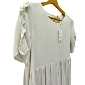 LLove Mini Dress Sz S Women’s Beige Cottagecore Neutral Lined Textured NEW