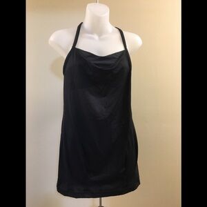 EGC no flaws/holes/stains, no size tag so check measurements,moisture-wicking Power Luxtreme fabric in the bra and lightweight Mesh in the body help to keep you cool/covered loose body is fitted at the hip to help keep this tank in place open crossback straps are elastic to move with you in your twists designed with pockets to hold removable bra cups flat seams for comfort. Power Luxtreme, Mesh.4way stretch, moisture wicking, lightweight, breathable shelf bra: light coverage: medium low hip.