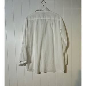 LM Beach White Button-Up Cotton Women's Shirt Roll Tab Sleeve Size Medium