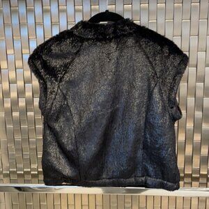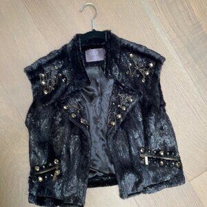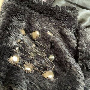 LM Lulu Paris Black Faux Fur Vest. Size M. Gently Used. Detailed buttons chain