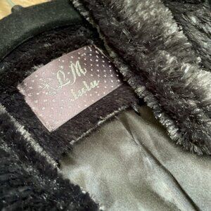 LM Lulu Paris Black Faux Fur Vest. Size M. Gently Used. Detailed buttons/chain on shoulders, lapel, pockets. 100% polyester. Beautiful quality. Can be oversized. Very fashionable!