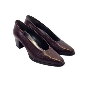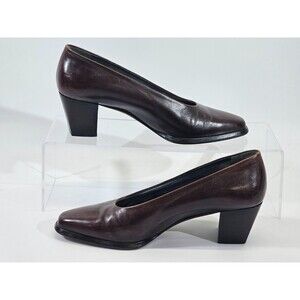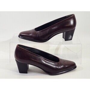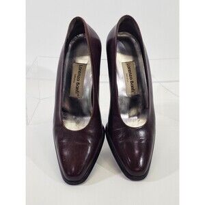 LM Women's 38 Lorenzo Banfi Brown Italian Leather Square Toe High Heels Shoes