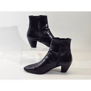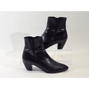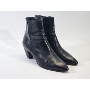 LM Women's 38 Lorenzo Banif Black Pointed Ankle Boots Booties Leather 2.5" Heel