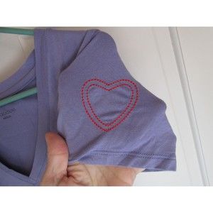 Condition: Pre-owned! Size: M Color: Purple Features: Pullover - Short sleeve -Very pretty purple t-shirt with I Am Love (Jamaica) theme. Decorated on front, back, and both sleeves. Deep V-neck. THE SOFTEST 100% cotton stretch fabric.