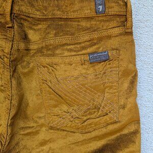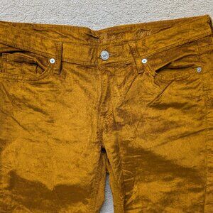 LN 7 For All Mankind Gold Flynt Flare Corduroy Pants 30 metallic stretch jeans