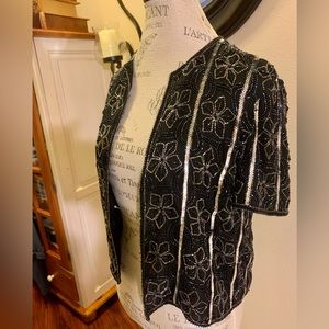 LN PAPELL BOUTIQUE BEADED & SEQUINED EVENING JACKET. SHELL 100% SILK.