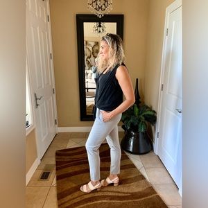 The perfect no fuss no muss pant. These slacks do not wrinkle 63% polyester, 32% viscose, 5% elastane. 2 faux flat pockets on back. Slit side pockets for a very flattering slenderizing look. The ALLSAINTS top model is wearing can be found in my closet or pair with the daring Zara black top NWT in my closet.