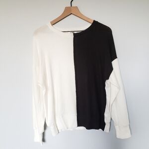 LNA Black Colorblock Crewneck Pullover Sweater Black White Neutral SZ XS