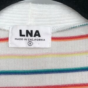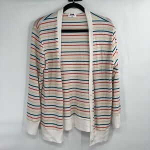 LNA Brushed Don Cardigan Sweater Striped Knit Tencel Lyocell White Multicolor S Stripes