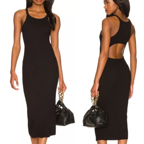 LNA CLOTHING Dress SZ Large Rilynn Rib Racer Black Midi NWT Stretch Cutout Back