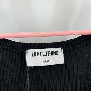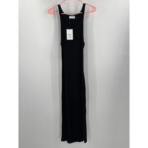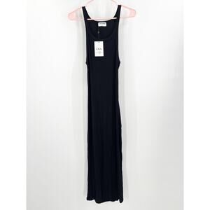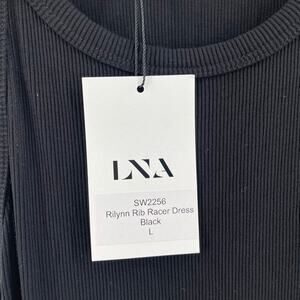 LNA CLOTHING Dress Size Large Rilynn Rib Racer Black Midi NWT Stretch Cutout Back Basic