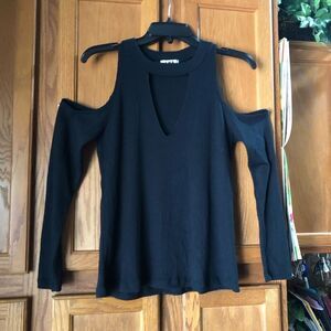 LNA Choker Cut Out Ribbed Cold Shoulder Pullover Sweater Black - XS