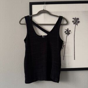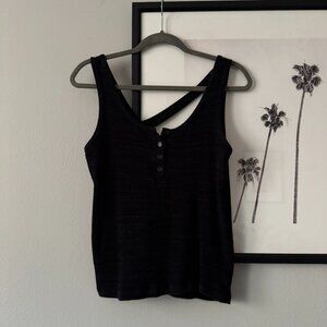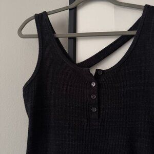 LNA | EUC Ribbed Henley Cross Back Tank in Dark Gray Size Medium