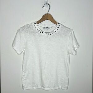 LNA Evereve Jett Cotton Slub Studded Embellishment Neckline Collar T Shirt